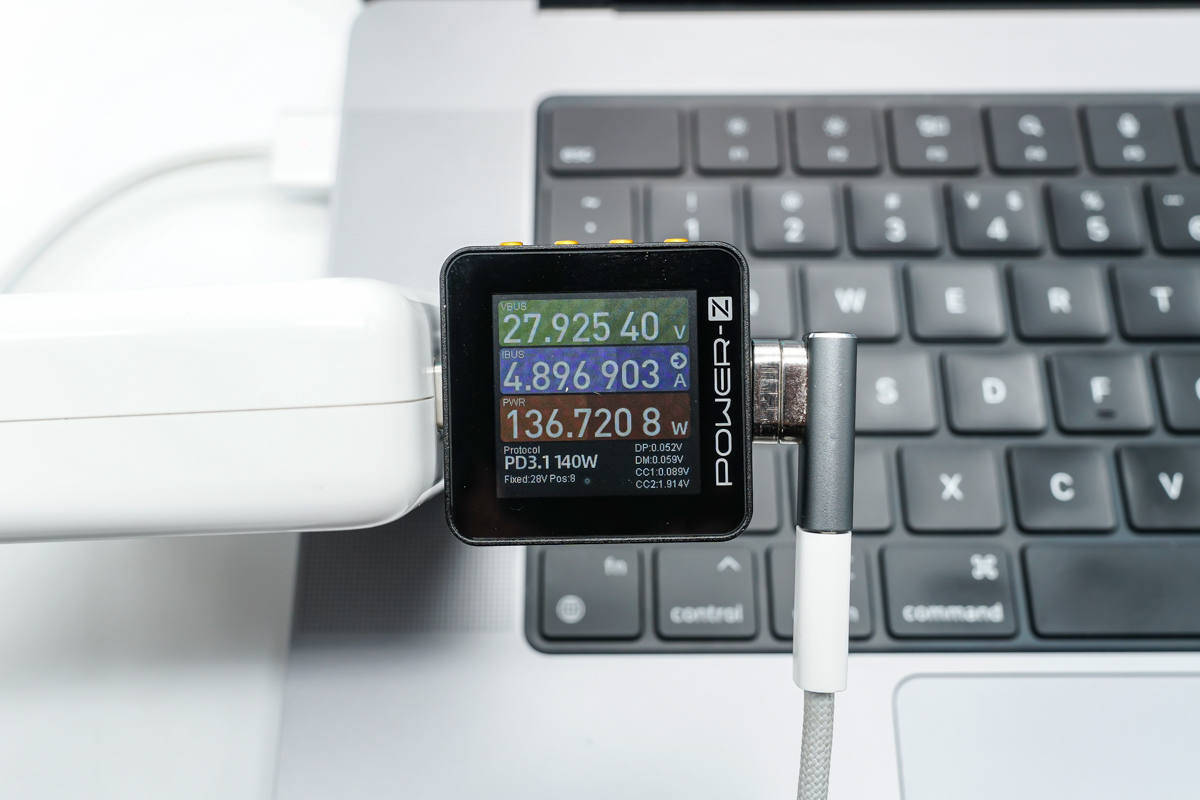 Even... it also supports 140W fast charging, and the adapter is connected to Apple's 140W gallium nitride charger and MagSafe 3 fast charging cable. At this time, the charging voltage is 28V and the power is 135.72W.